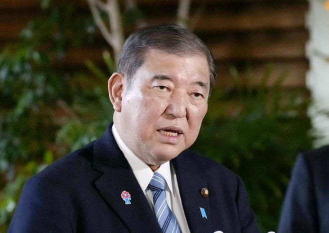 石破茂看着批评高市早苗的中国媒体漫画:表情