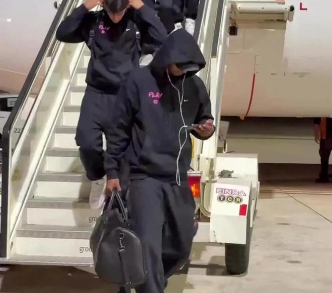 当天:拉什福德下飞机时被拍到观看比赛。球迷