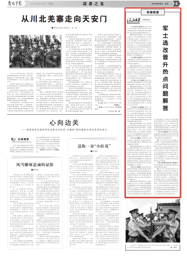 关于选择中士和晋升的热门问题的答案①秘书长li问:我是2024年3月加入军队的应征者。我未能在2025年3月获得我想要的东西。我可以申请参加9月份的早期选择和修复Sergeants的早期选择和修复吗?答案:根据政策法规,如果建筑士兵服务了一年并符合规定的条件,则他或她可能会提前参加中士的选择和补救措施。您于2024年3月加入陆军,并在2025年3月服役一年。您可以在要求之前参加选举并进行更改,但是如果您尚未选择选举和修订,则不能在应征入伍服务之前参加选举和更改。该法规主要与MGA中士一年的晋升和退休组织的系统设计一致,以避免影响中士团队的订单管理。 ②秘书小号问:我Ave从未参加过初步的选择培训,但新兵在公司后3个月内参加了专业培训。就我而言,我可以参加中士的选择和修订吗?答案:根据政策法规,如果入伍培训完成后通过专业培训评估,则应认识到该方案水平的政治工作,而与机构相关部门结合使用,则应被认为是预先选择的培训经验;如果应征者受到预选培训(包括预选培训),并且可以被视为相应初级的初级技能水平专业人士。 ③中士的第二层问:在我作为中士的时间里,我被授予第二种功绩。一年前,我可以晋升为一年级中士的排名吗?答:根据政策法规,如果SergeaNT在该排名范围内获得了规定的表彰和奖励,他或她可能会提前晋升。您目前是中士的第二层。在被晋升为第二级中士之前,您获得的赞扬和奖励不能用作前进至第二中士的条件。只有那些在谢尔盖(Sergeon)时间表的第二,第二年和第三年中获得规定的赞扬和奖励的人。 ④豪华中士的第二层问:我是具有出色军事特征的特种部队的成员。我参加了许多比赛并获得了奖项,并获得了第二类的优点。我在一种练习中意外受伤,被诊断为10道路的业务残疾,但我通常的培训没有受到影响。我的身体表现和专业培训比以前更好。在9月的整个服务期间,我都面临选举和离开。我可以吗被评估为残疾后晋升为军事级?答案:根据政策规定,中士的基本条件必须满足中士的选择和进步,包括身体状况,心理特征和工作能力以履行职责。在实际工作中,由于工作而造成的工作,士兵因工作而受到工作,如果他们有能力并有能力履行职责,他们可以参加任务,并且可以参加他们的职责,并适用于他们的选择。 liu中士刘问:我今年由于个人疾病而住院,尚未被释放,但我在9月份提供了全面服务。在这种情况下,我可以在军事级中建立吗?答案:根据该政策,如果中士在规定的医疗时期生病或受伤,并且尚未完成军事职位晋升的晋升期,他或她可能会与毕业后治疗后的年度晋升。如果您因战争或职责而受伤,那么新的军事排名将是根据PETSA计算的,PETSA符合规定的医疗时期期间晋升年的排名;无论您是否在战争中生病,无论是出于商业而受伤,新的军事级都将从晋升等级的年度排名之日起计算。 ⑥王中士问:我们的单位即将分发新设备。我在一般情况下做得很好。该组织计划让我参加会议培训。我个人想去那里。但是,在参加培训之后,您需要更改工作并以新的专业职位工作。您将不到一年就将您晋升为第二中士。这会影响下一个军事级别的进步吗?答:建立新设备战役的有效性,需要立即Upang支持专业人员同行。显然,新的西装和有组织的(扩大,替换)部队迫切需要,并且在重大战斗和新地方,新质量和新设备中没有足够专业职位的士兵可能适用于培训经验,技能水平,专业时间,教育和其他选择和晋升所需的资格;选择和晋升后,选择和前进后应在此标题的级别内获得相应的资格。这项政策的目的是加强在新地区和新优质的战斗力中维持人才的维护,夺取人才来源的高质量和高技能,并为一支新军队的全面建设提供了强有力的支持。它可以用作提高军事级别的条件吗?答案:关于当地证书的认可问题,有两类:一类是当地政府获得的专业资格证书,他们已确认在国家专业资格证书查询平台上有效,对陆军有相同的影响;其他是地方政府获得的技能水平水平,被确认在国家专业资格证书查询平台上有效,仍应参与重新评估和认证类似的专业工作以及相同水平的陆军技能。军事工作被专业人士完全占据。原则上,熟练的军事人员不再有组织在职业评估站(机构)访问当地技能。中士学院毕业生Xiao Zhang问:我可以在更换促销培训之前接受的职业和技术教育吗?答:关于替代特征促销培训的过程,规则存在明显的差异,并且不会更换不同的本质。促销培训的重点是扎实的潜在发展,并且是军事晋升的重要资格。军士职业教育只是中士培训的重要补充,无法取代促销培训。但是,目前的政策阐明了,如果职业职业培训或职业教育参与中士的晋升经验。