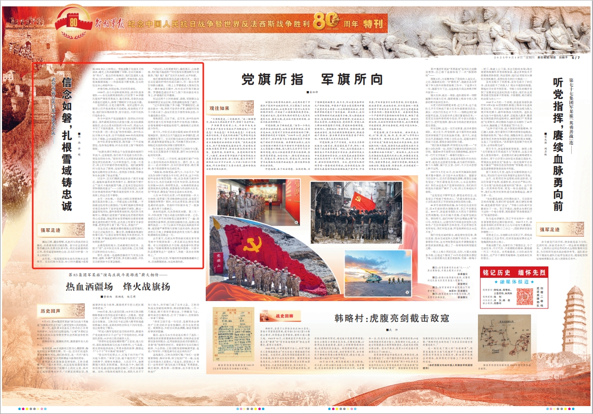 武装警察西藏兵团的Chamdo支队的中队 - 信仰 - 信仰与石头一样坚实,扎根于雪地,以应对忠诚度■汉鲁伊Xu Lancang河边界,西藏的东喉咙,Zaqu River的联合,Zaqu河和Quo River的联盟,位于Changdu的古代Quant of Changdu。位于这里的武装警察西藏兵团的Chamdo支队的中队,面对苦风,看着营房里的高山,官员和士兵们在看着土地和水的寂静。到去年年底,这里开始了高强度的实践培训。官员和士兵听到命令并爬上海平面超过4,500米的山脉,持续了10个小时。雪爬进靴子,转了水和冰,睫毛中的冰消失了,几只眼睛消失了,官员和士兵们慢慢地转向了“雪白”。到达目标区域后,他们迅速将自己分配给连续36个小时。山区招聘和灭绝,雪伪装,高压和低氧强烈的身体健康……战斗场景在不断变化,但是官员和士兵的信念和决定始终是相同的。收费,时间 - 冻结和历史相似。 1938年,在小昆加山脉的茂密森林深处,来自东北反日联合军的一个部队的士兵大胆地战斗,无所畏惧,比减去30摄氏度的摄影更大。他们采取了伏击战术,互相击败敌人,并在Liushuhezi战役中取得了巨大的成功。信仰所在的位置。在伏击期间,反日盟军部队的士兵是如此冷,以至于他们无法拉动扳机,枪支是如此冷,以至于他们无法拉动螺栓。他们甚至爬上冰上,躺在雪地里,在战斗中保持自己的位置,并携带OUT政党命令没有失望。作为由中国共产党建立的反日本人的第一军,最长的反日战争和最困难的条件,东北反日本联合军被敌人的敌人后面分开,并继续在白山和黑水之间挣扎14年,写了一章,用血液和火。作为“第二营第五营,第一个营,第一军团,东北反日盟盟部队的支队”,中队起源于反日本战争,起源于悬崖地区,平均高度为3,500米,使诚实的基因可以通过。在中队荣誉室的展示柜中,展示了一个牛皮地图袋,以及卷曲的身体的角落,时间在皮革上留下了细微的裂缝。 “反日本盟军的祖先根据该袋子中包含的地图游行和战斗。P指导不仅是目标,而且是信仰的方向。尽管他们暂时失去了与聚会的接触,但他们总是相信,仅仅通过鲜血和生命跟随军事党。苏珊承认,祖先坚持要与残酷的森林和雪地环境作斗争,而悬崖上的小苦难消失了。落在后面。尹苏珊(Yin Suzheng)随着时间的流逝倾斜,一只手抓住了士兵的背包,另一方面指着远处的雪山,并招募了他:“祖先被聚会的旗帜掩盖在这种残酷和困难的条件下,并没有掉下来,并没有掉下来,并煽动了雪人的河流,并散发出了革命的成功!反日统一军队的地图在荣誉室中行进的地图上,上面标有密集的脚步,士兵抓住了牙齿,拿起背包,拧紧了他的背包皮带:“船长,我可以做到!”当士兵带着空中来到营地时,天空变成了白色。他用大火发射了拳头,说:“我曾经以为军事灵魂是书中的一个词,但现在我知道军队的灵魂在跌倒时需要保持球队的力量!”放置并完成最艰巨的任务。这种“力量”被球队的官员和士兵抓住,成为了一名Scandalla并决定获胜。那年,一条居民道路突然因大雨而突然倒下,道路和车辆受到严重破坏。许多人能够控制。收到以下内容后,小队官员需要我们。我们可以击败大雨,摇摆和滑坡吗? “指出曹瓜伊鼓励了一切。”是的!可以做!可以做! “官员和士兵看起来像火炬,像雷声一样反应。他们根据现场迅速任命任务。一些官员和士兵撤出了保护网,冲到了滚石缝隙,而另一部分则负责群众的指导。移动“罗德甘(Rodgang)记得他在战斗救援救援救援救援救济。在救援期间,许多石头仍然滚动。 Ang他的同伴使用他们的身体阻碍了局势,以防止大规模损害。困难D是可能的。艰辛和战斗风格的风格5分钟休息。 “动员中队领导人图登尼玛(Tudennima)的动员短而有力。盗窃,摧毁,狙击……在这次训练中,官员和士兵共同努力,敢于战斗和战斗,并在每个阶段完成工作。”高度高,标准较高;氧气和许多战斗精神。 “ Zhang Fangyu是分队培训部分的干部,近年来已经引入了这个中队,一直在困难和危险的前线中进行战斗,并在各种练习和练习中充当了主要力量。它在70个基本任务中结束了这项工作,并以10多种类型的练习来实现了各种各样的练习,并保持了静置的努力和风格。聚会和党之后的聚会“没有改变。我一直在军队中,在军队中R 15年,面对三年前的人生选择:他应该以第三种优点搬家,还是应该留下来继续教书和帮助?当时,对于Kong Qinginggui来说,赛车的变化无疑是最好的选择。但是当时,中队刚刚增加了一群新兵,而教练缺乏脊柱力量。如何选择? Kong Qesgui整夜都没有睡觉。早晨,中队收到了他的自愿申请,可以留在球队中。后来,他重写了多年的培训笔记:谨慎行驶悬崖的炸弹,旨在在夜间射击并尽快针对悬崖,以悬崖为目标,他带领每个人都在寒冷的石头上进行战术动作,躺在冷石头上,以照亮渴望爬行力量的技术。用他的爬行技巧在他的力量流技术中使用爬行技术爬行的力量,膝盖而不休息天。最后一个标签 - 由球队领导人孔领导的新兵小队在特别分析中赢得了第一名,并且许多新的新兵都取得了不错的成绩。有人问他是否不后悔留在团队中。他指出了小队墙的尊严,并说:“我们需要在做任何事情时首先考虑组织的需求。只要我仍然需要一个中队,即“老教练”,我将永远站在训练区。”在这个小组中,军事精神的继承就像雅隆·桑博河(Yarlung Zangbo River)的水一样,接下来的海浪跟随海浪,永远赶快。